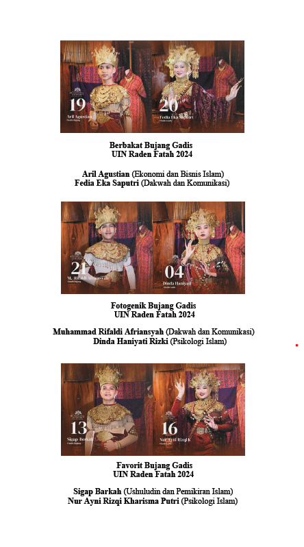 BIODATA BUJANG GADIS UIN RADEN FATAH 2024/2025